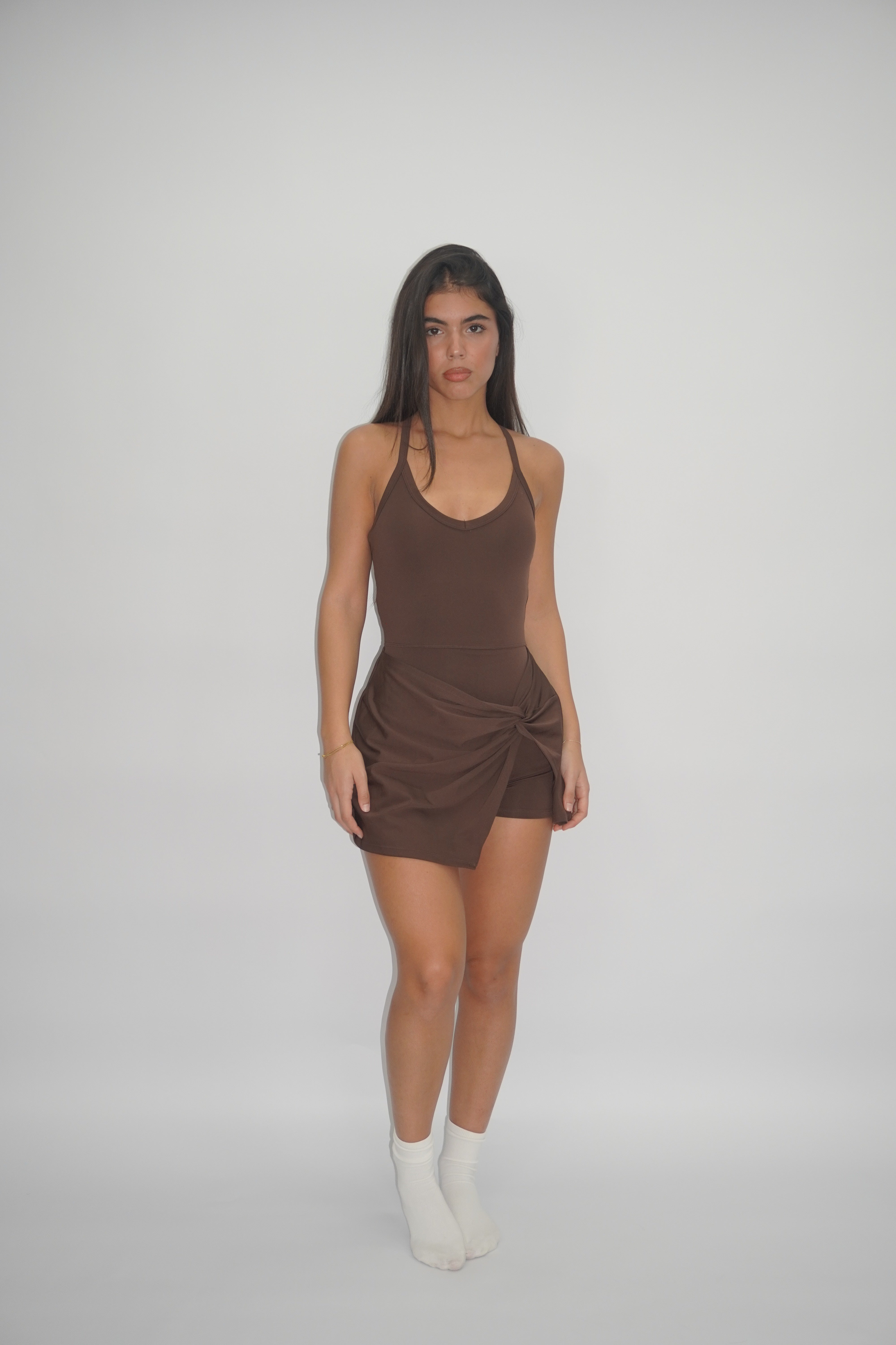 Un capo pratico e raffinato pensato per accompagnarti in ogni occasione. Questo abito corto unisce femminilità e comfort grazie al suo design intelligente: sotto la gonna è presente un pantaloncino integrato, che offre libertà di movimento e sicurezza in ogni momento.