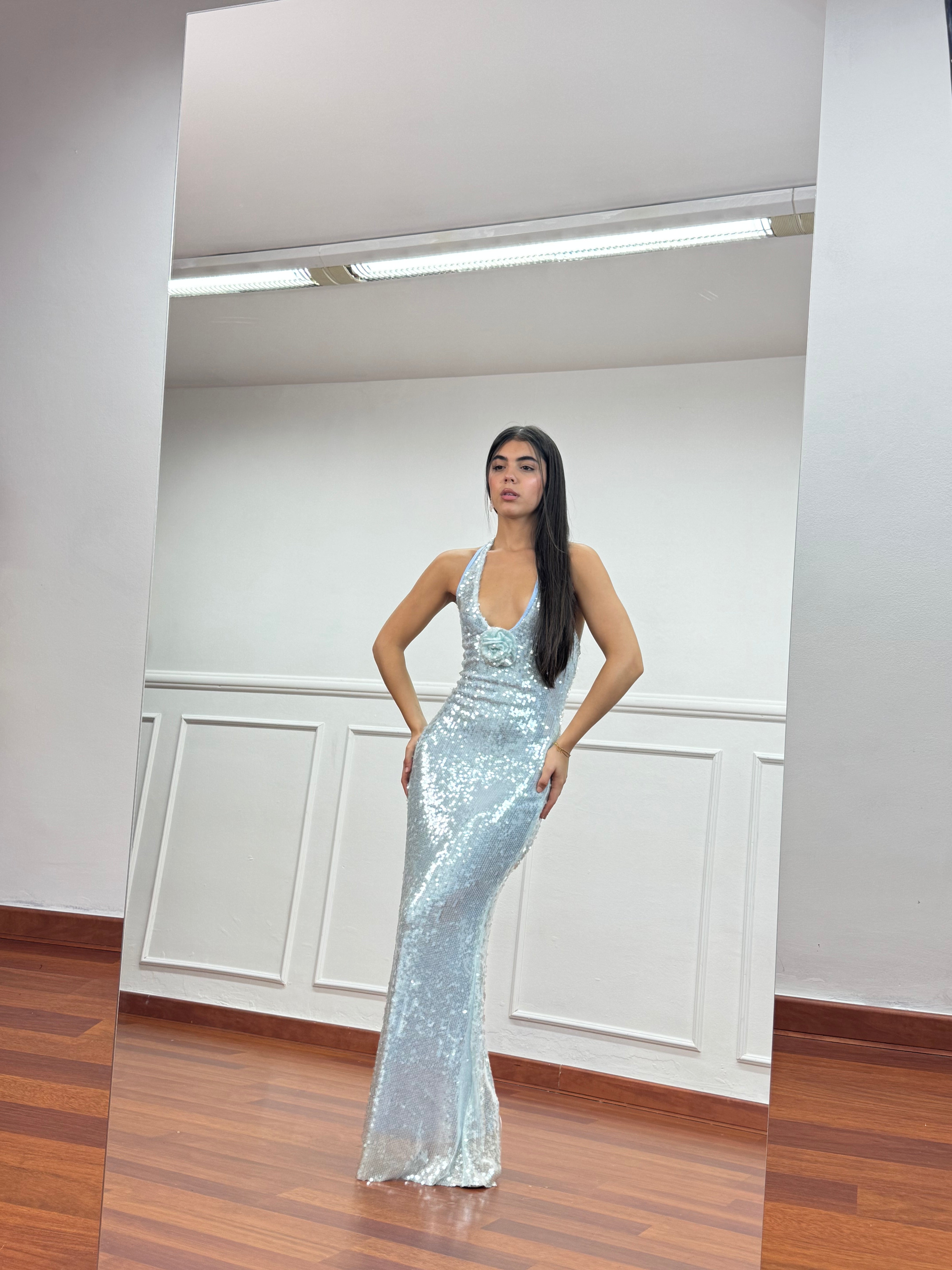 L'elegante Abito Event è perfetto per le occasioni speciali. Lungo e disponibile in un delicato colore celeste, il tessuto paglietta gli conferisce un tocco di raffinatezza. Aggiungi un tocco di classe al tuo look con questo abito unico.