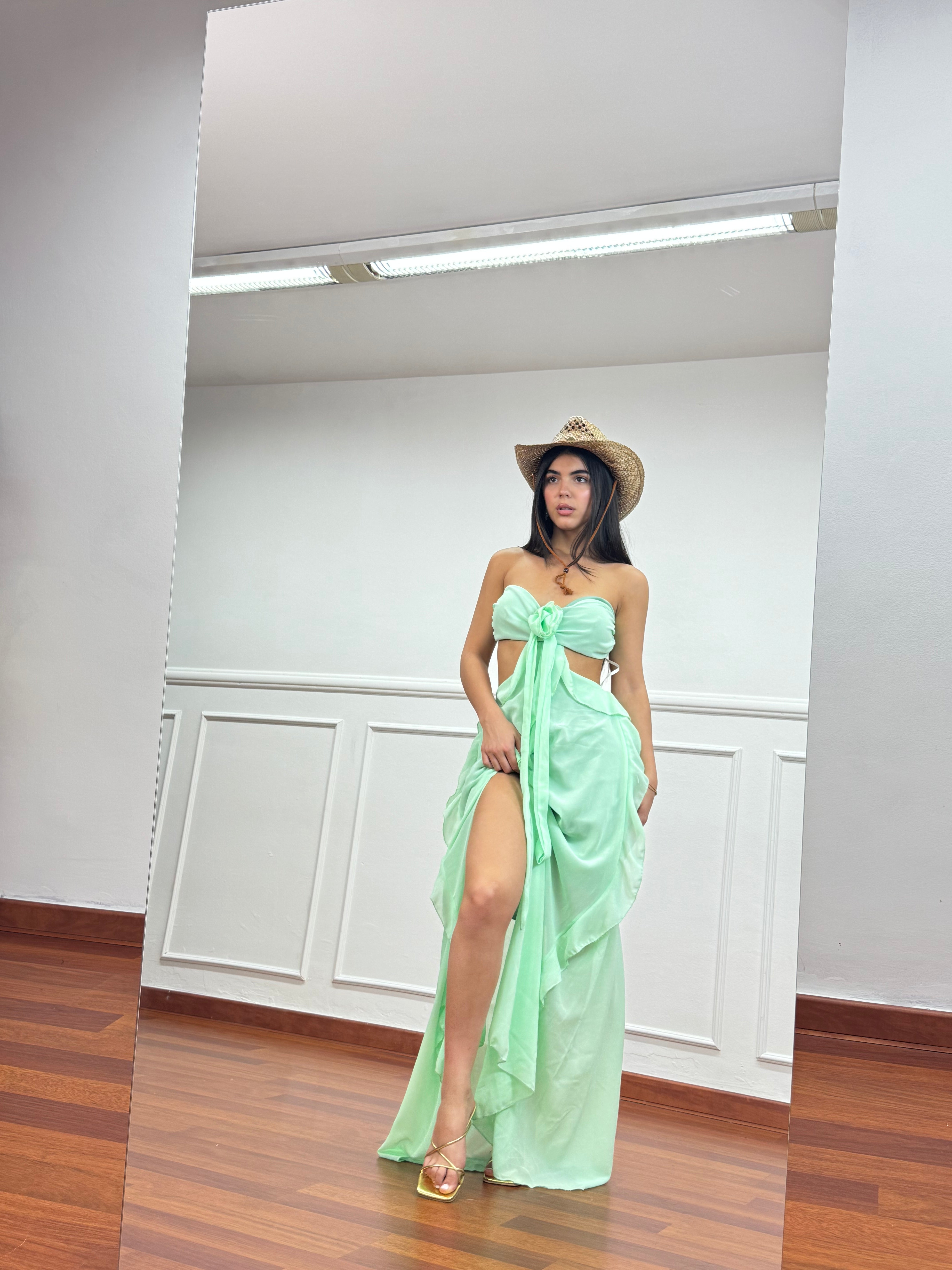Questo abito Greace è realizzato in un tessuto morbido e fresco, ideale per le giornate calde. La sua consistenza permette di muoversi liberamente e mantenere una sensazione di freschezza sulla pelle. Perfetto per un look elegante e confortevole.