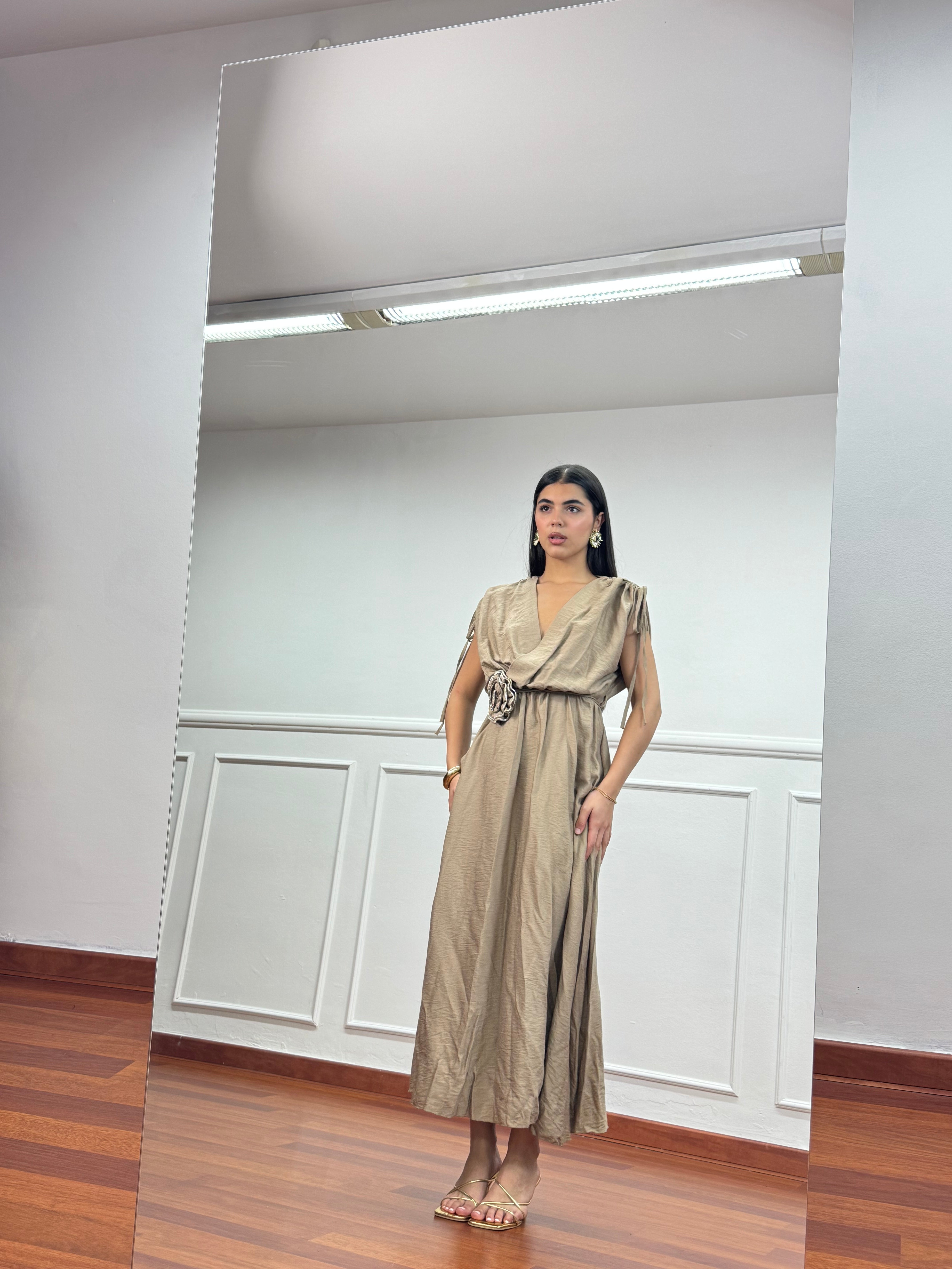 Il nostro Abito Lungo Lilly è perfetto per un look fresco e versatile. Realizzato con un tessuto morbido, offre un comfort unico nei tuoi impegni quotidiani. Con il suo fiore in vita ricoperto di strass, puoi indossarlo sia per le tue commissioni che per una serata elegante con tacco. Una scelta versatile per ogni occasione.