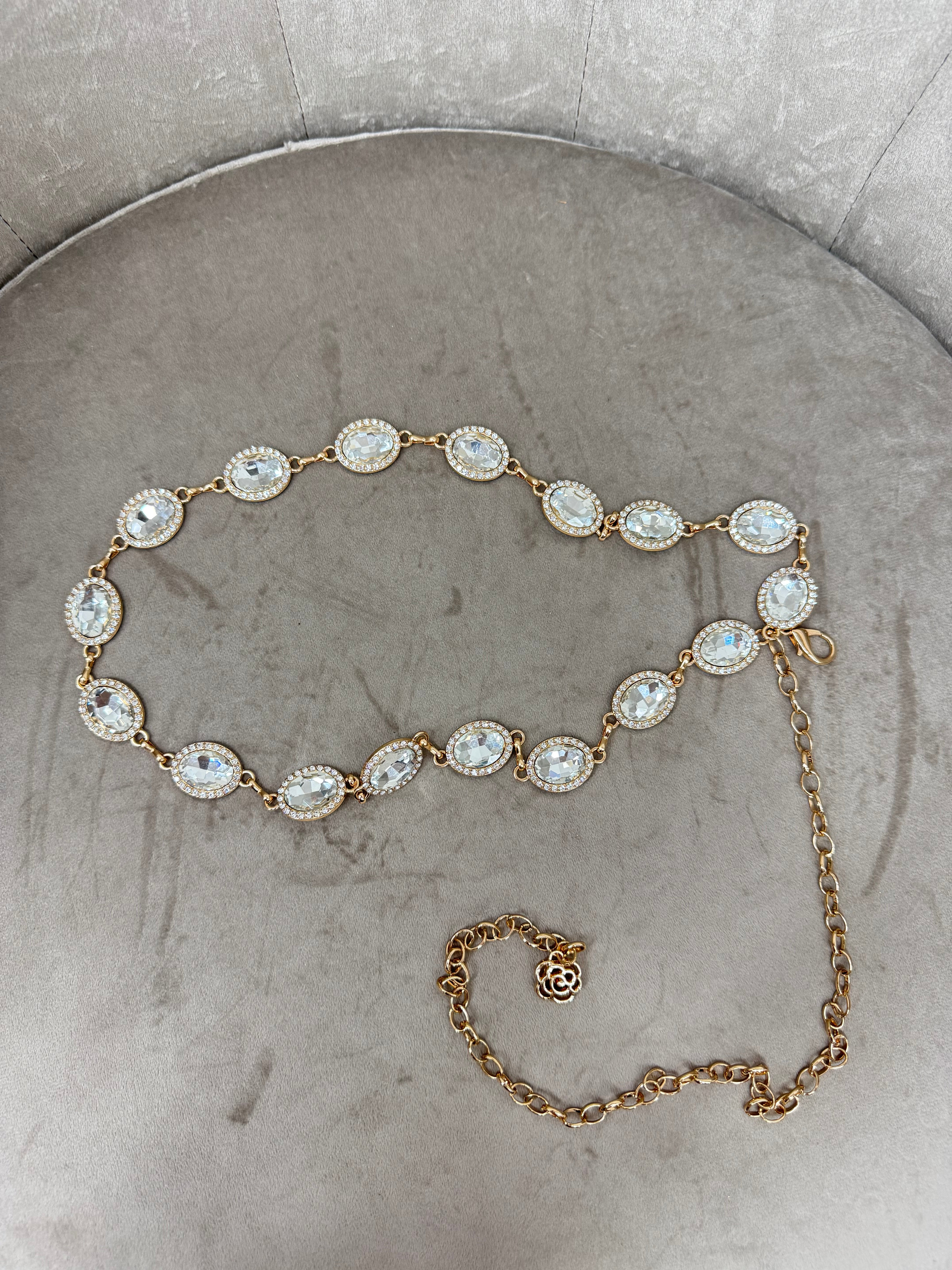Aggiungi un tocco di lusso al tuo look con la nostra cintura gioiello in oro e argento. Con il suo design elegante, questa cintura è perfetta per rendere i tuoi outfit ancora più cool. Indossala per un look sofisticato e alla moda.