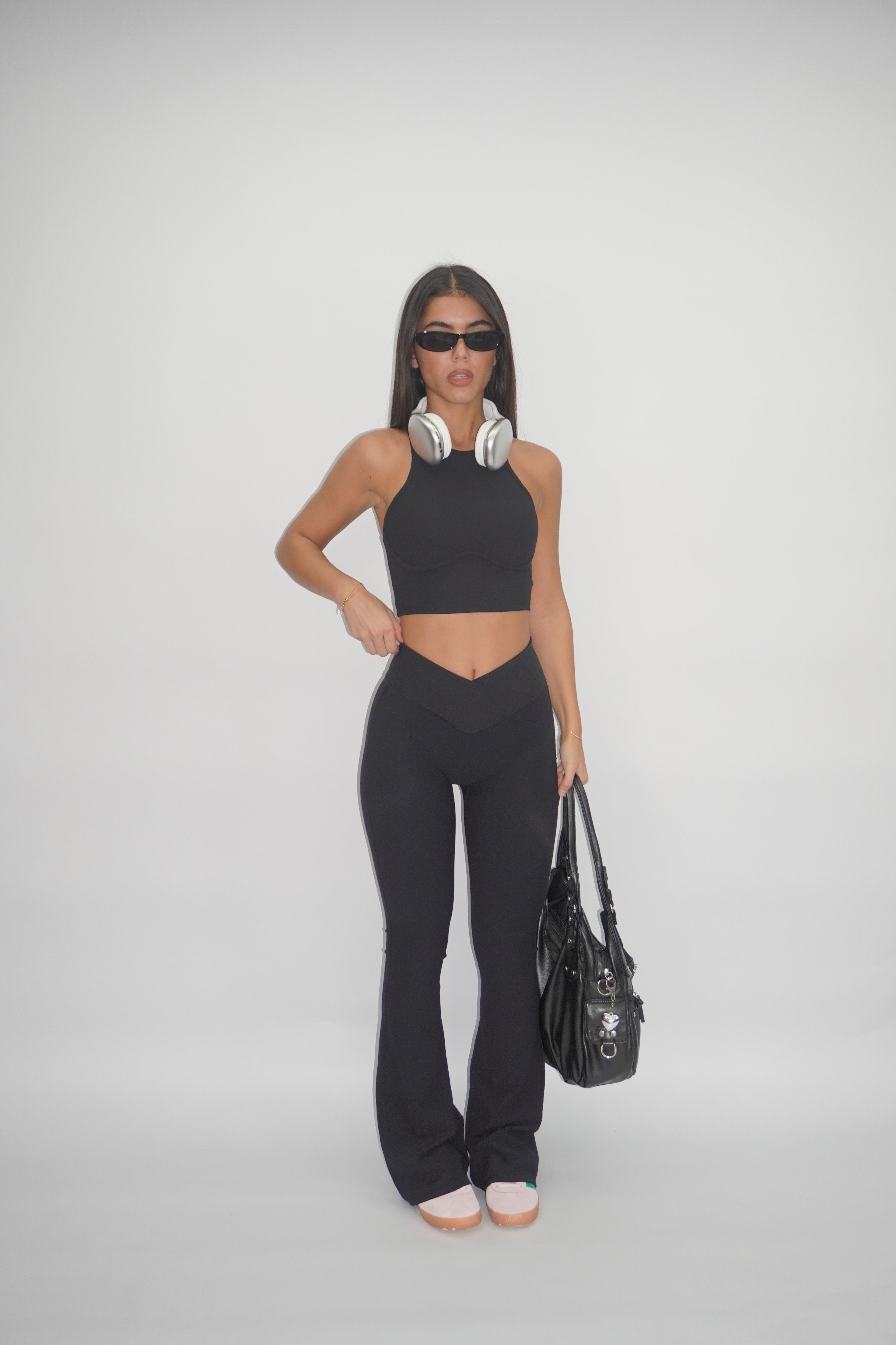 Questo set a costine è la combinazione perfetta di stile e praticità. Il top corto è dotato di coppette rimovibili che garantiscono sostegno e comfort personalizzabile, mentre i pantaloni con vita a V slanciano la figura e seguono le linee del corpo con una vestibilità aderente ma confortevole.