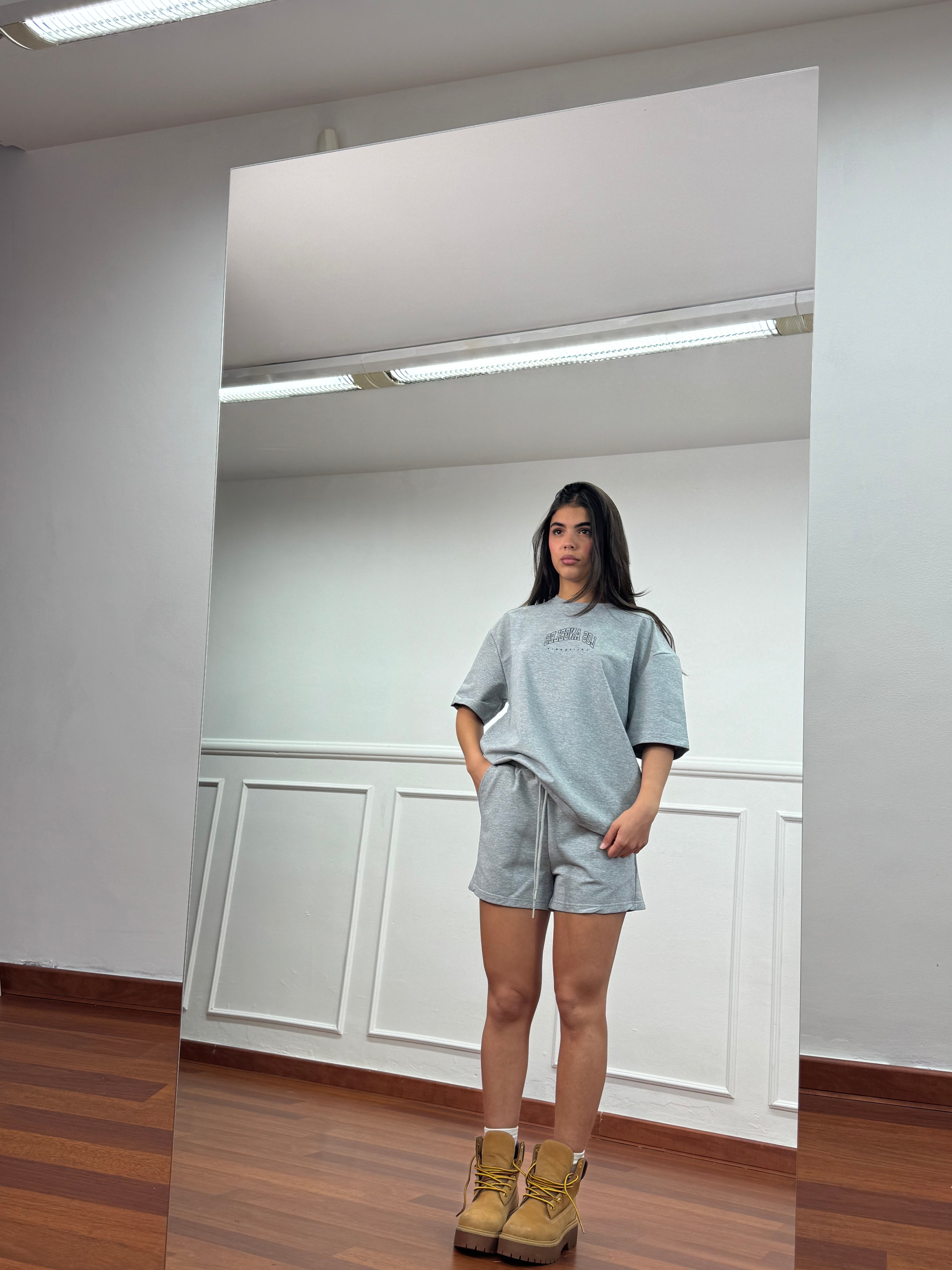 Coordinato Los Angeles è il soluzione perfetto per la tua vita dinamica. Include pantaloncini e t-shirt, comodi e pratici per affrontare le tue giornate frenetiche. Con materiali di qualità e un design moderno, non sacrificherai mai lo stile per la funzionalità. Il tuo outfit perfetto per ogni attività!