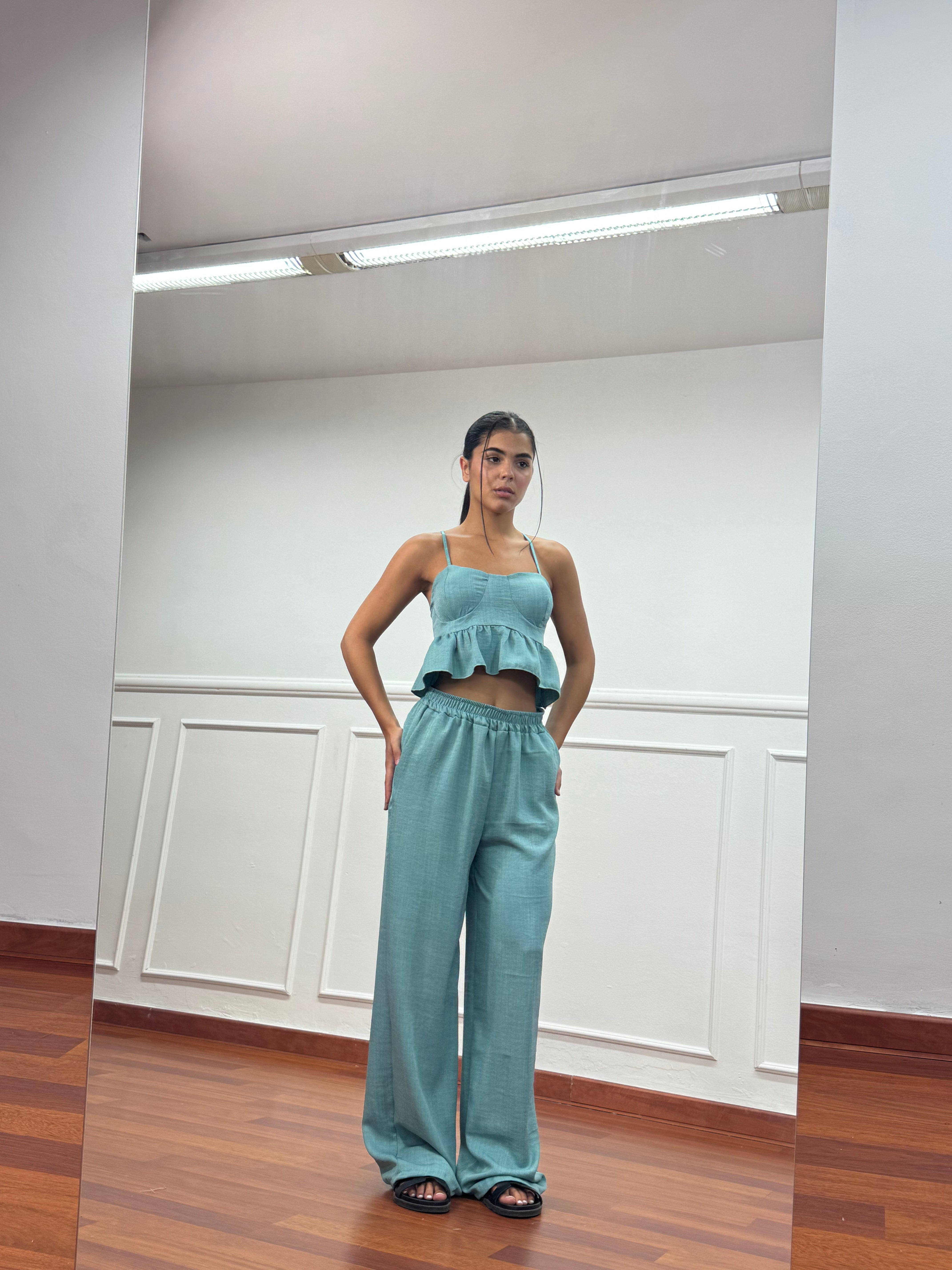 Il coordinato Pia è una combinazione perfetta di comfort e stile. Il pantalone lungo e il top con bretelle regolabili e coppe preformate garantiscono una vestibilità perfetta e comoda. Ideale per ogni occasione, il coordinato Pia ti farà sentire sicura e alla moda.
