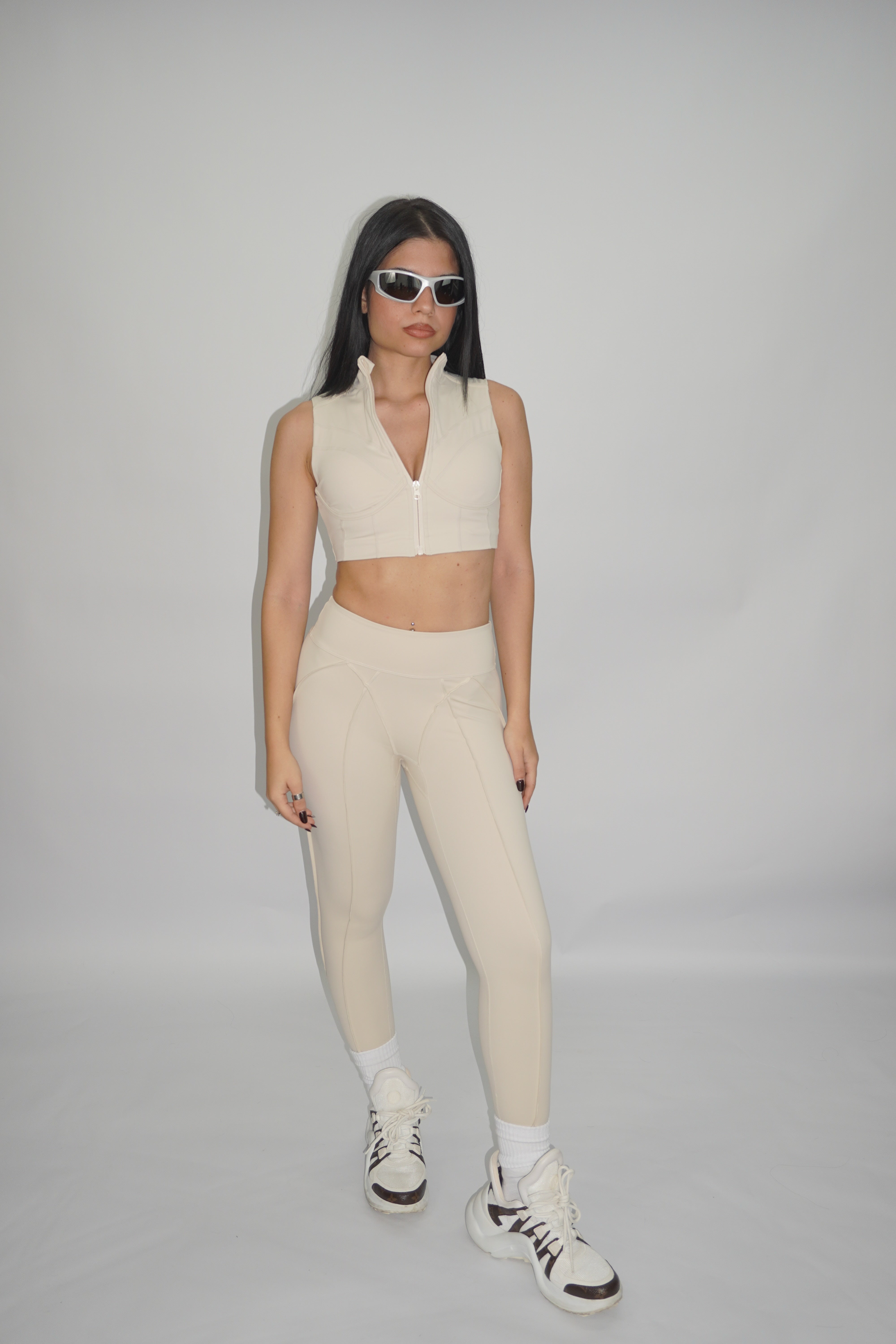 I leggings a vita alta completano il look con un design che slancia la silhouette e dona stabilità nei movimenti. Le cuciture strategiche esaltano le forme e rendono il capo ancora più versatile.