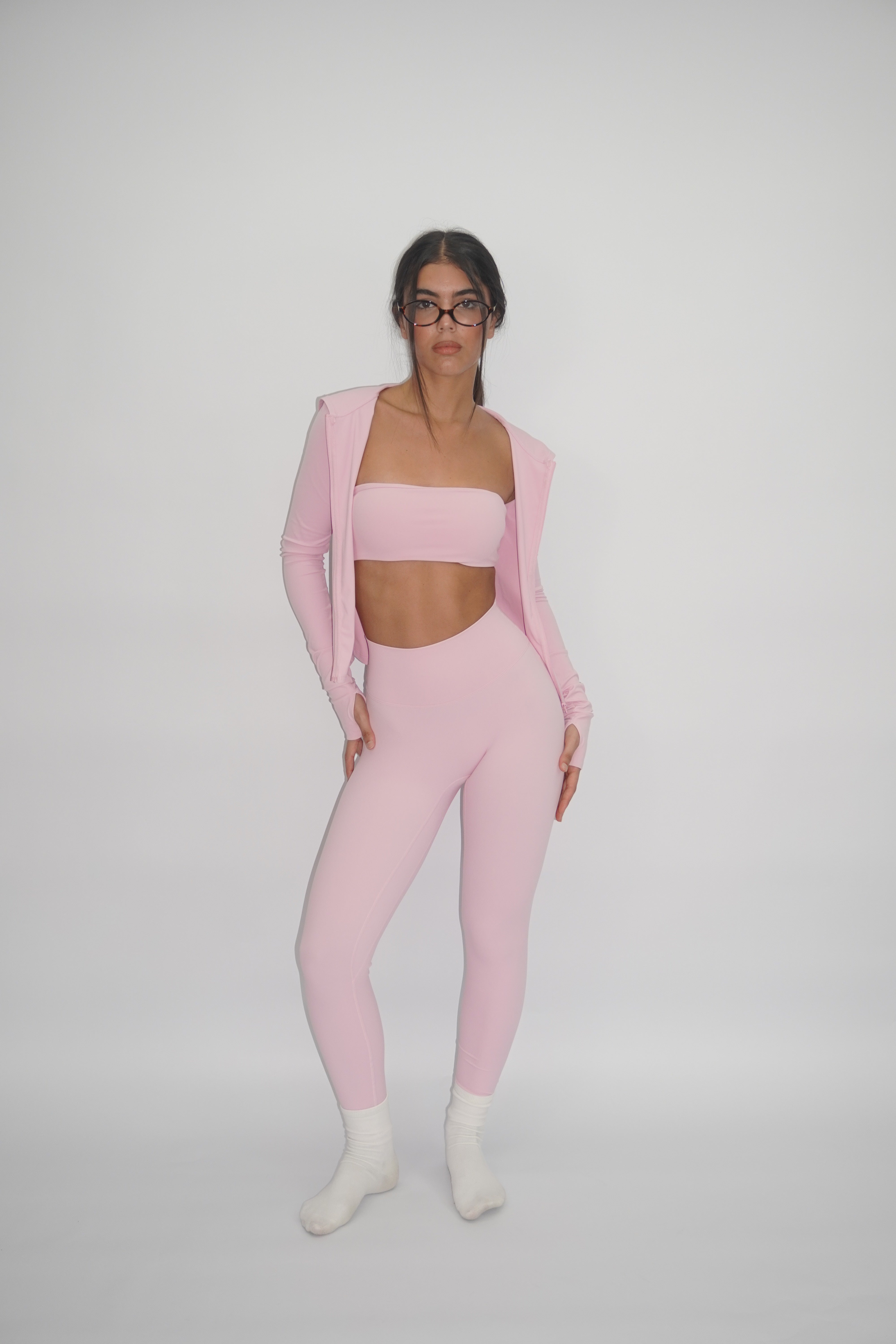 Un insieme coordinato e minimal, che unisce comodità e stile con un tocco femminile moderno.