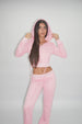 Un set comodo e trendy che unisce praticità e stile casual. La felpa con cappuccio ha una zip frontale, coulisse regolabili e dettagli a contrasto, mentre i pantaloni hanno vita elasticizzata con lacci coordinati e gamba dritta per una vestibilità confortevole.